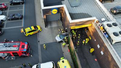 Auto ramt muur van laden en lossen-plek Jumbo: vrouw raakt bekneld