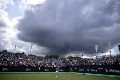 Op de eerste dag van het grastennistoernooi Libéma Open in Rosmalen stonden achttien wedstrijden gepland. "Zeven wedstrijden zijn uitgespeeld. De andere elf wedstrijden zijn of niet uitgespeeld of er is niet eens aan begonnen", maakt Ed Hubers, grasmeester van de Libéma Open, de balans op na een regenachtige dag.