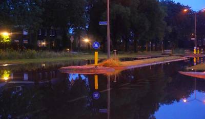 Straten in Rosmalen onder water gelopen na forse regenval tijdens code oranje