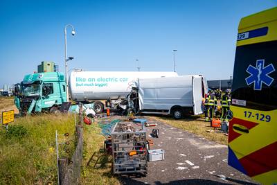 Ravage na ernstige botsing tussen vrachtwagen en bestelbus