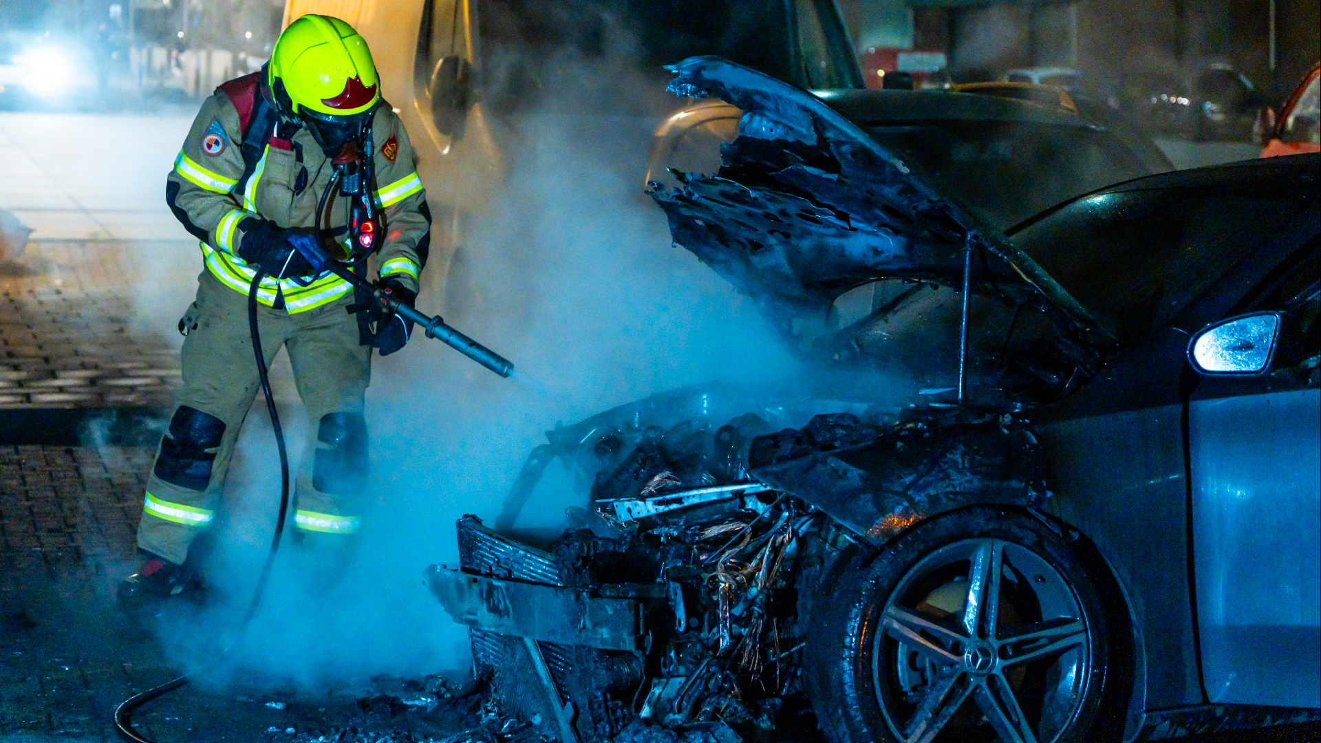 Geparkeerde auto beschadigd door brand