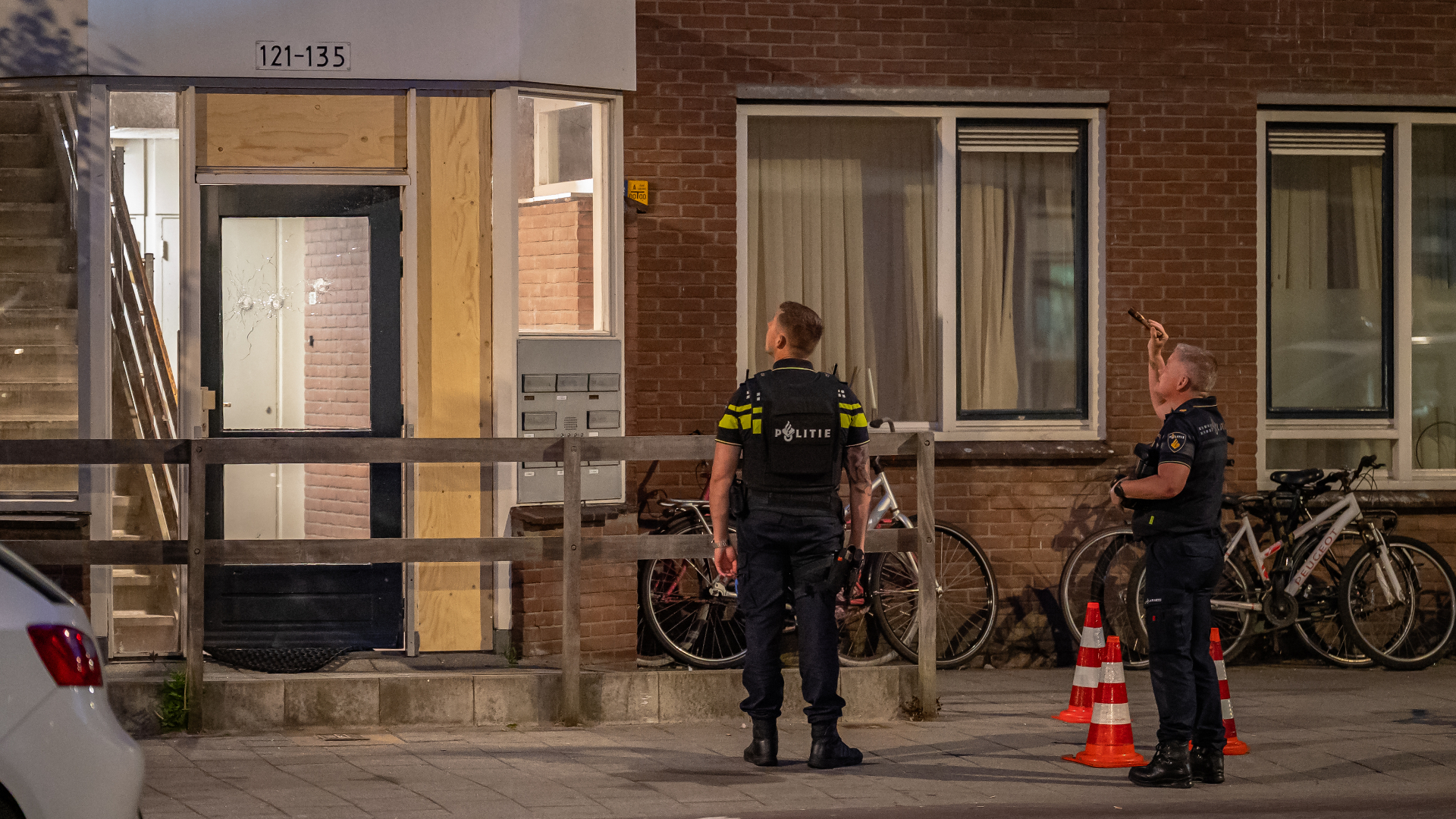 Na explosie nu geschoten op portiek, drie grote gaten in deur