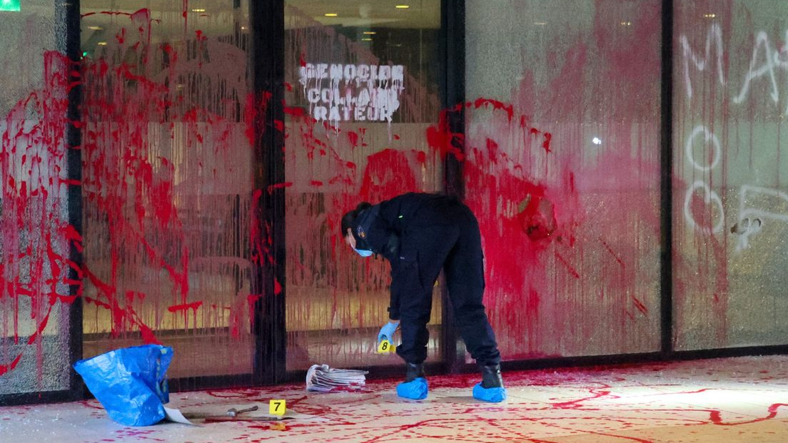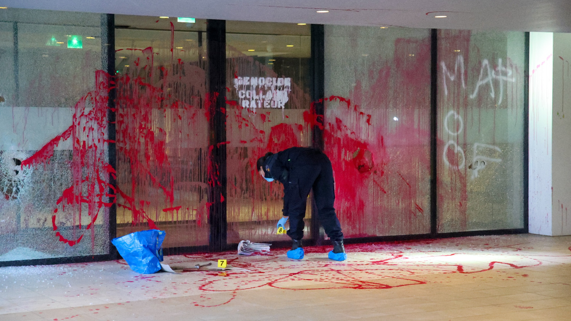 Het kantoor van Maersk aan de Boompjes in Rotterdam is in de nacht van zondag op maandag rond 03:30 uur beklad door activisten van actiegroep Pal Action. Meer dan twintig ruiten zijn ingeslagen en op het pand is rode verf gegooid. Twee weken geleden werd er ook al actie gevoerd bij het kantoor.