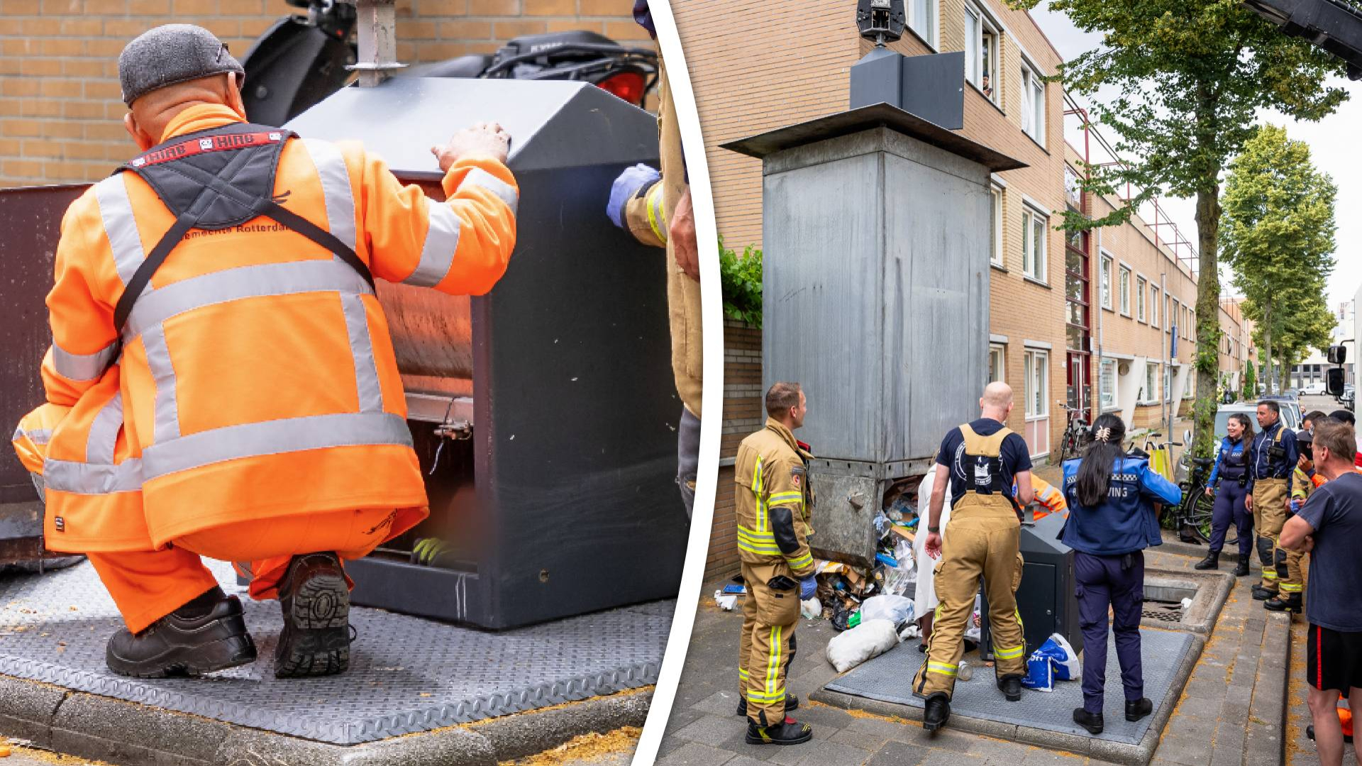 Man valt in ondergrondse vuilcontainer, brandweer redt hem