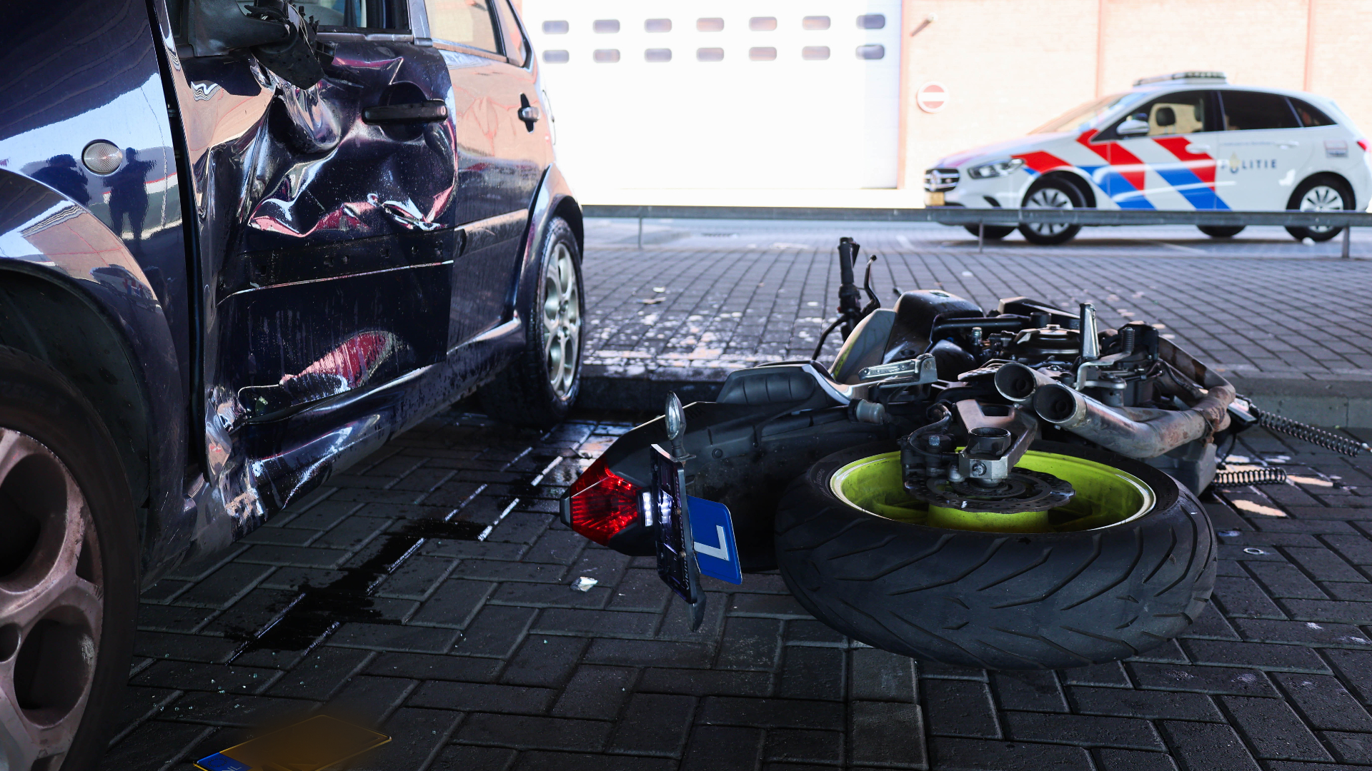 Motorrijder klapt op auto en moet naar ziekenhuis bij 'allereerste' rijles