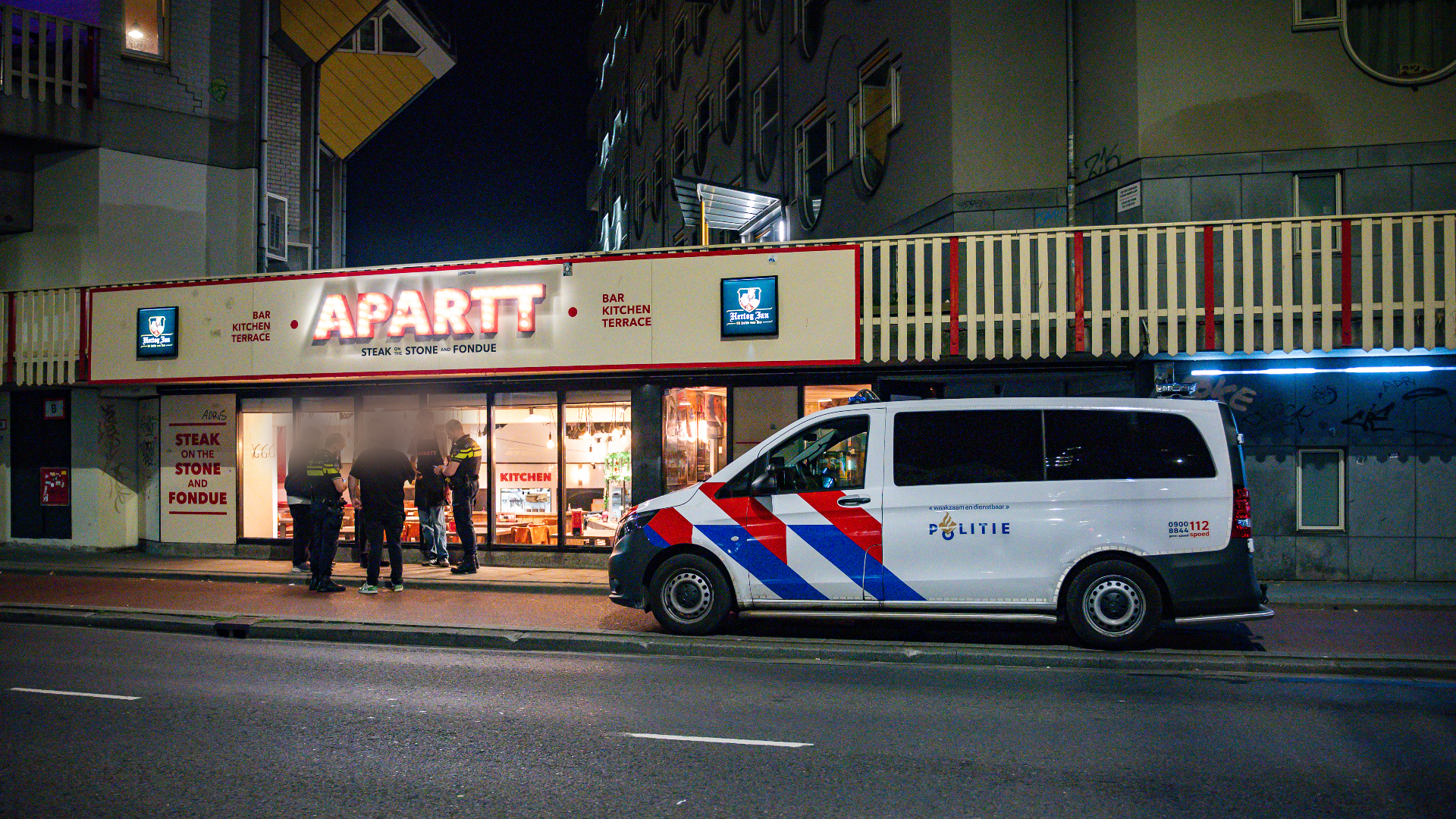 De politie kreeg in de nacht van maandag op dinsdag een melding binnen van een overval bij een restaurant aan de Blaak in het centrum van Rotterdam. Volgens 112-correspondenten is een dader daarbij gevlucht met een onbekende buit.