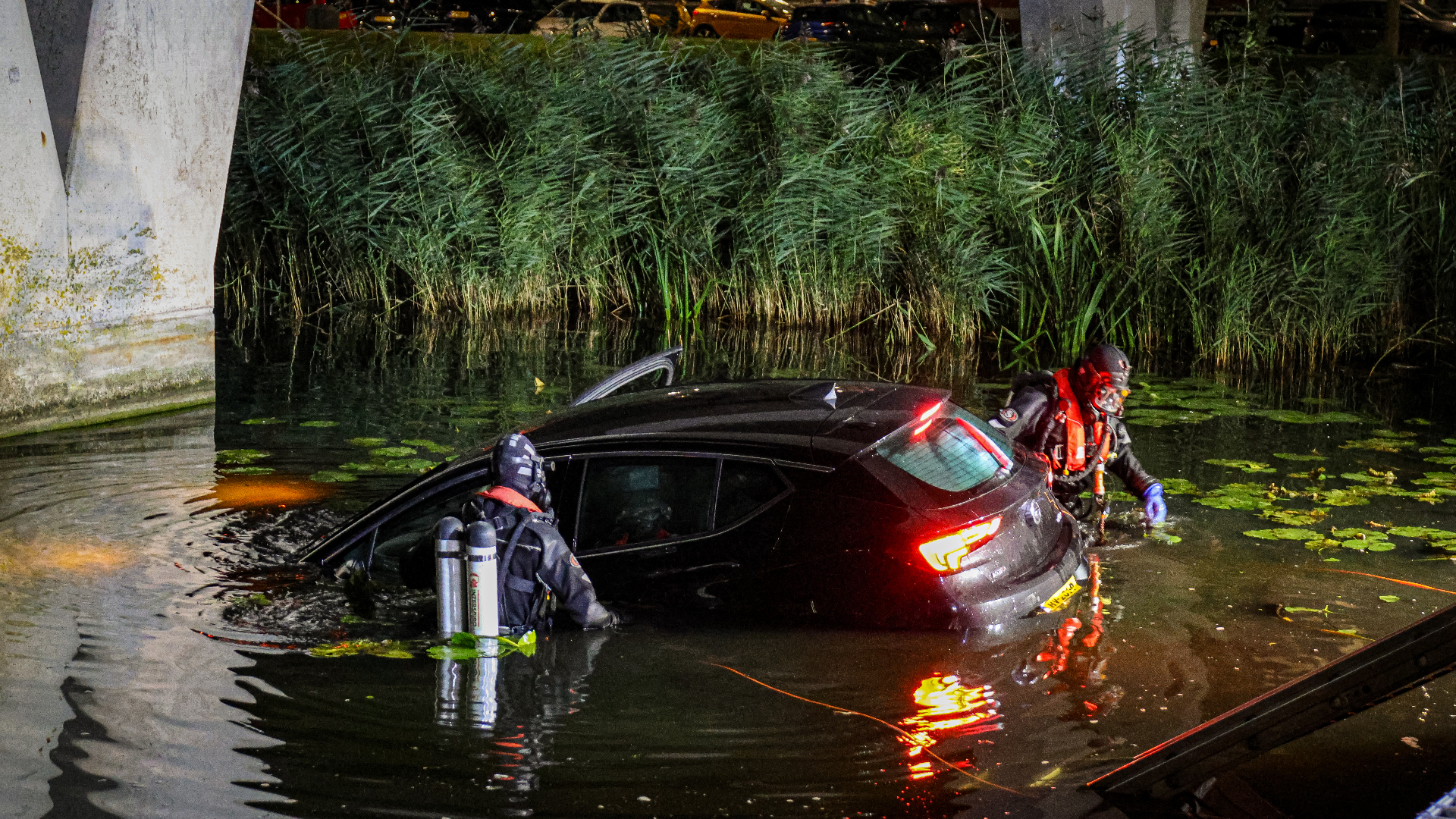 ROTTERDAM - In de late avond van maandag 22 september rond 22.40 uur is een auto te water geraakt aan de Laan van Dada in Rotterdam.