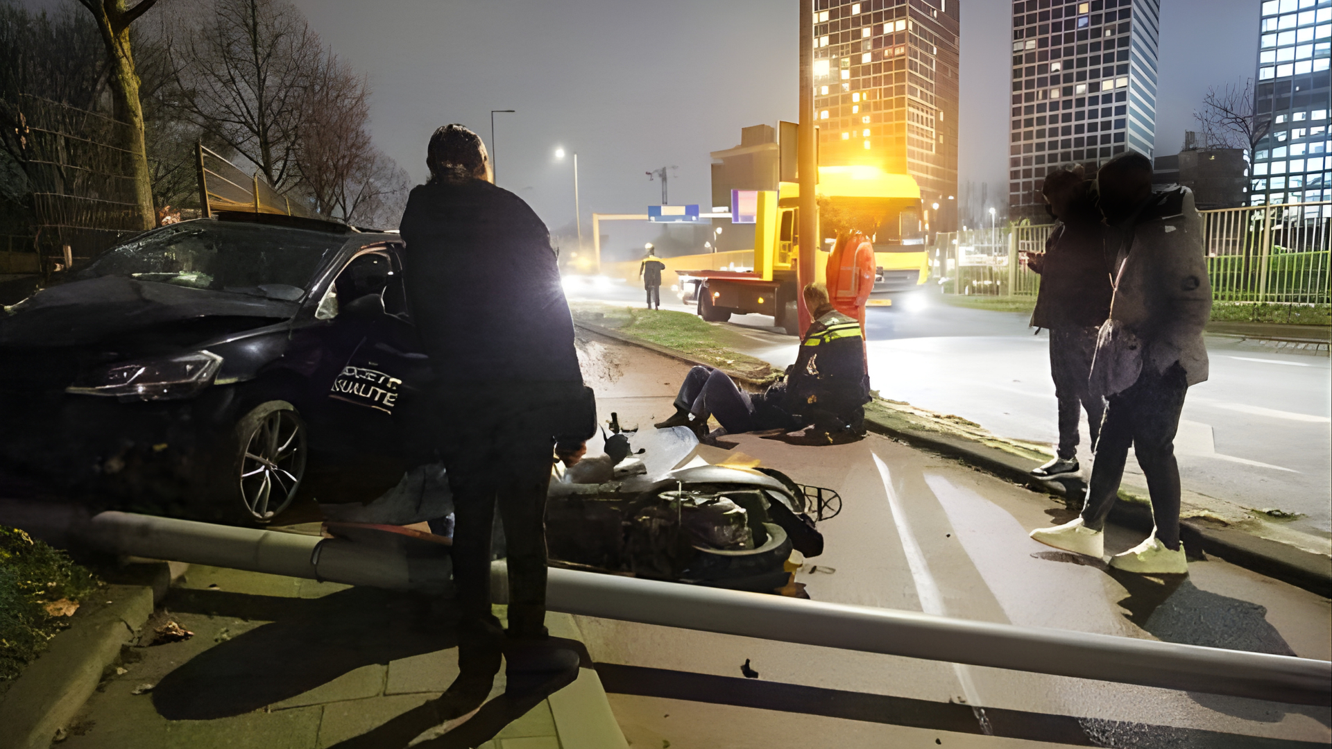 zondag 21 december 2025, 09:31 uurEen scooterrijder is in de nacht van zaterdag op zondag gewond geraakt nadat hij op de Tjalklaan in Rotterdam-West tegen een lantaarnpaal was gebotst. De paal was kort daarvoor uit de grond gerukt door een automobilist, die de macht over het stuur was verloren. De scooterrijder had de paal, die op het fietspad was beland, niet gezien.