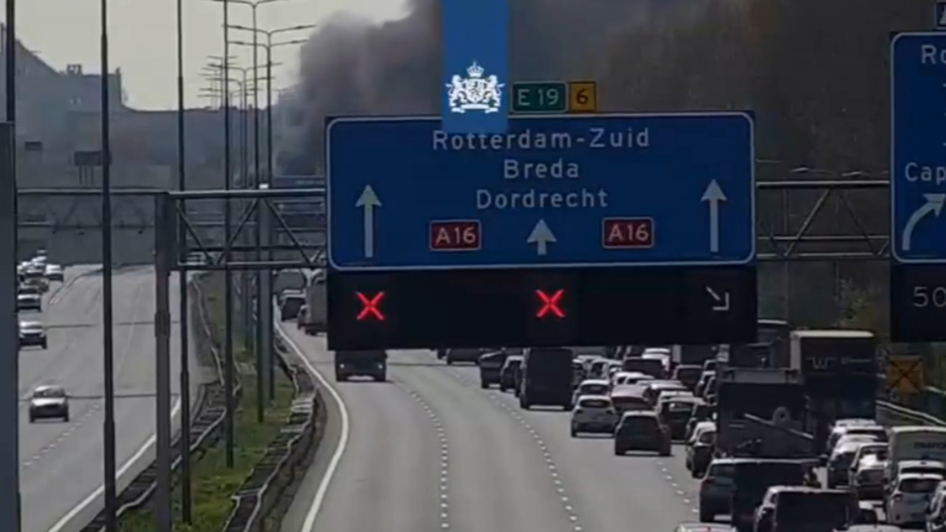 Op de A16 staat ter hoogte van de afslag Rotterdam-Kralingen een trailer van een vrachtwagen in brand. De hoofdrijbaan is vanaf knooppunt Ridderkerk afgesloten. Dat duurt nog tot 22:00 uur. Het verkeer wordt via de parallelrijbaan geleid of kan omrijden via de Beneluxtunnel.