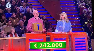 zondag 12 maart 2023, 23:02 uurAls de teller tijdens de halve finale bij 50.000 euro was gestopt, had hij op de knop geslagen maar zijn tegenspeler was hem iets te snel af. Maar goed ook. Nu kan Guido (54) uit Den Bosch namelijk 242.000 euro op zijn bankrekening bijschrijven.