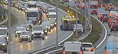 vrijdag 29 september 2023, 08:26 uurEMPEL - Bij een ongeluk op de A2 bij knooppunt Empel vlakbij Den Bosch zijn vrijdagochtend meerdere voertuigen betrokken. Dat meldt Rijkswaterstaat. Een auto is op zijn kant beland op de snelweg in de richting Utrecht.