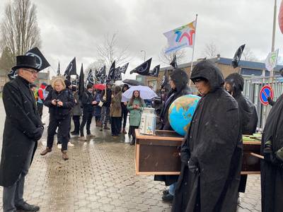 zaterdag 25 november 2023, 18:59 uurHet is niet niks wat actievoerders van Extinction Rebellion zaterdag naar hun hoofd krijgen geslingerd in Den Bosch. Daar lopen ze met 75 man sterk in een rouwstoet van de binnenstad naar een fabriek van FrieslandCampina, uit protest tegen de zuivelindustrie. ,,Een dikke huid is wel handig ja.”