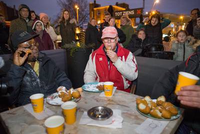 Marcel (56) verorbert 13 oliebollen in 12 minuten: ‘Had twee dagen niet gegeten’