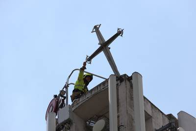 Kruis van kerkklok voormalige St. Pauluskerk Schijndel staat scheef