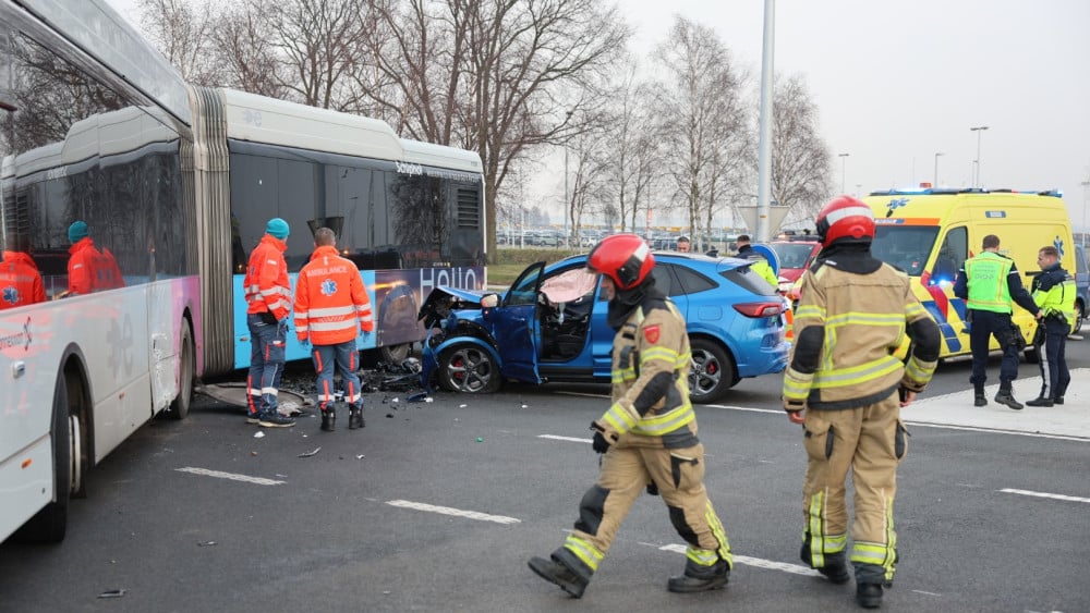 Twee gewonden bij botsing auto en bus bij Schiphol: kruispunt tijdelijk dicht