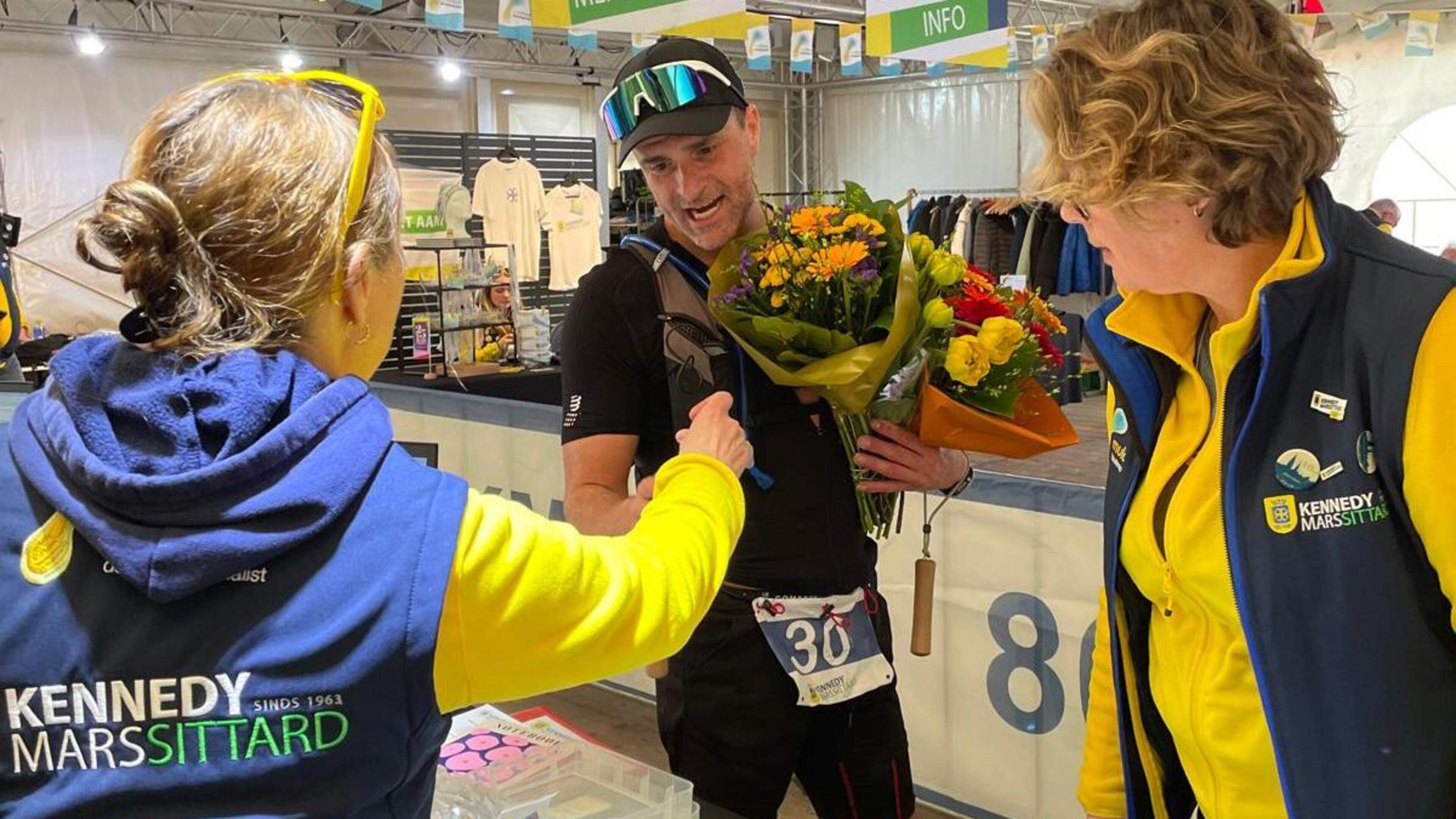 zaterdag 4 april 2026, 14:44 uurRamon Promps is zaterdagmiddag de eerste die de finish van de Kennedymars op de Markt in Sittard bereikte. In 9 uur, 5 minuten en 9 seconden liep hij de monstertocht van 80 kilometer uit.