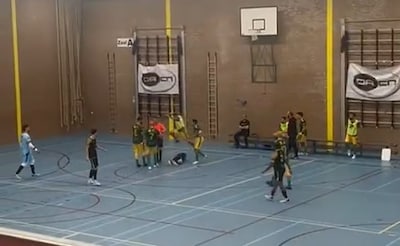 Zaalvoetballer beukt scheidsrechter omver: 'Je blijft met je poten van een ander af'
