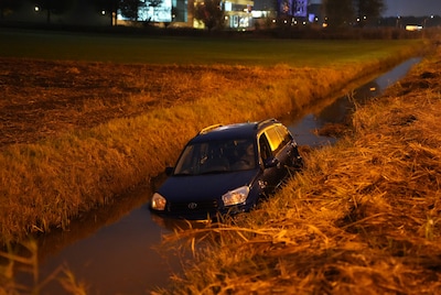 Een auto is vrijdagochtend rond 07.00 uur in de sloot beland na een aanrijding op de A59 tussen Waalwijk en Sprang-Capelle. Het andere voertuig, vermoedelijk een busje, reed na het ongeluk door.