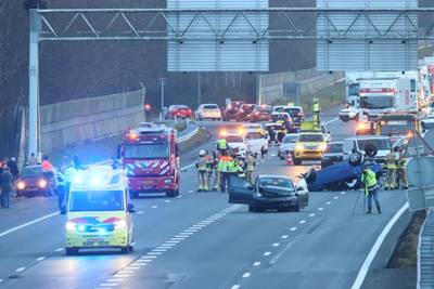 Ravage na groot ongeval waarbij auto over kop slaat