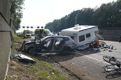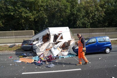 Enorme ravage op de A28: auto met caravan crasht, twee inzittenden gewond
