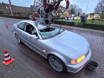 Auto botst op bouwkraan in Staphorst, bestuurder wonderwel ongedeerd
