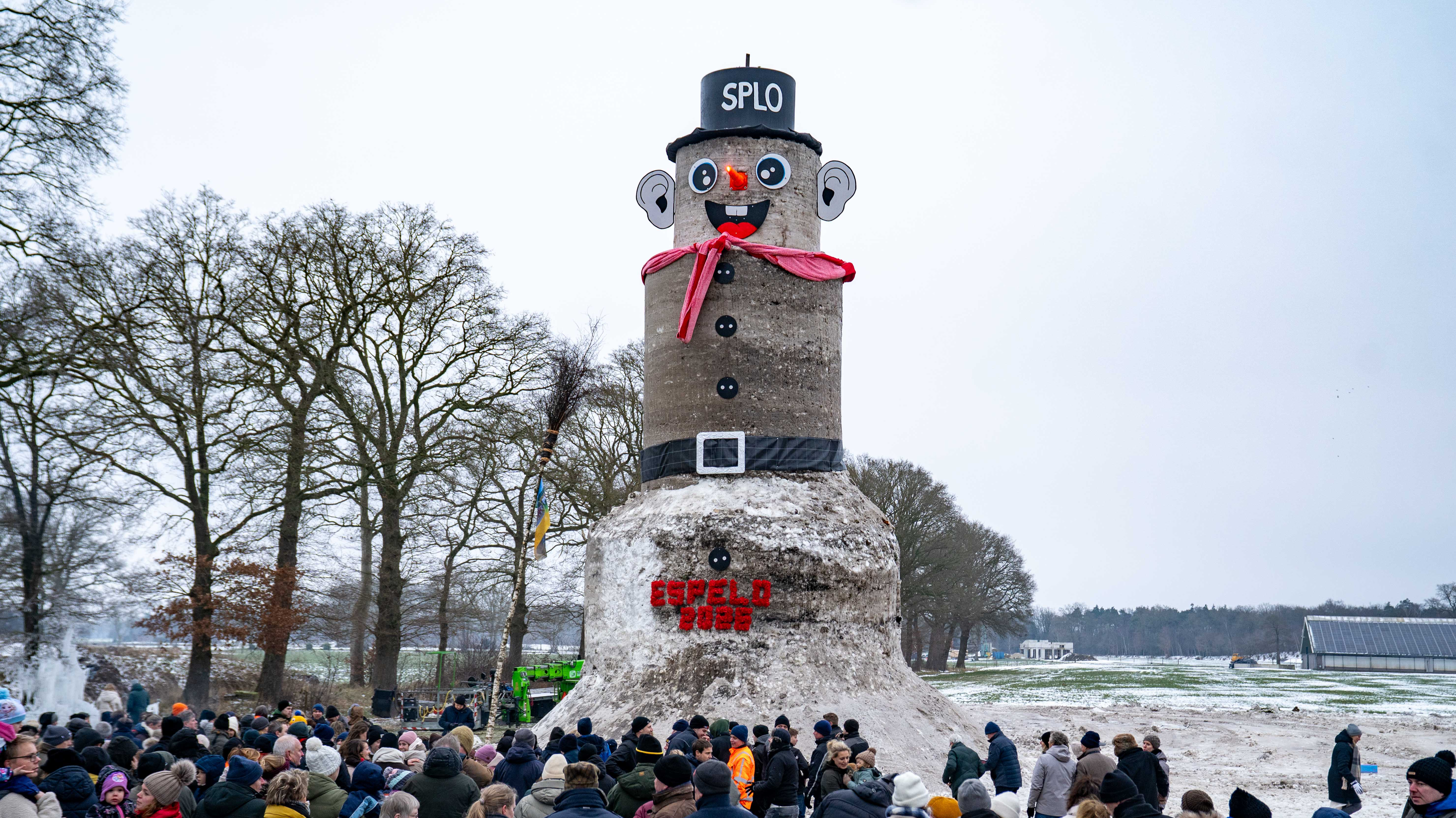 zondag 11 januari 2026, 17:15 uurDaar staat 'ie dan, glorieus boven het weiland verheven: de grootste sneeuwpop van Nederland. Hij staat in Espelo, dat vandaag het record terugpakte van Staphorst. En daar is hard voor gewerkt.