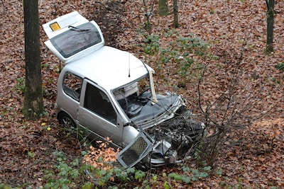 Chauffeur brommobiel schrikt zich rot als voertuig meters naar beneden stort
