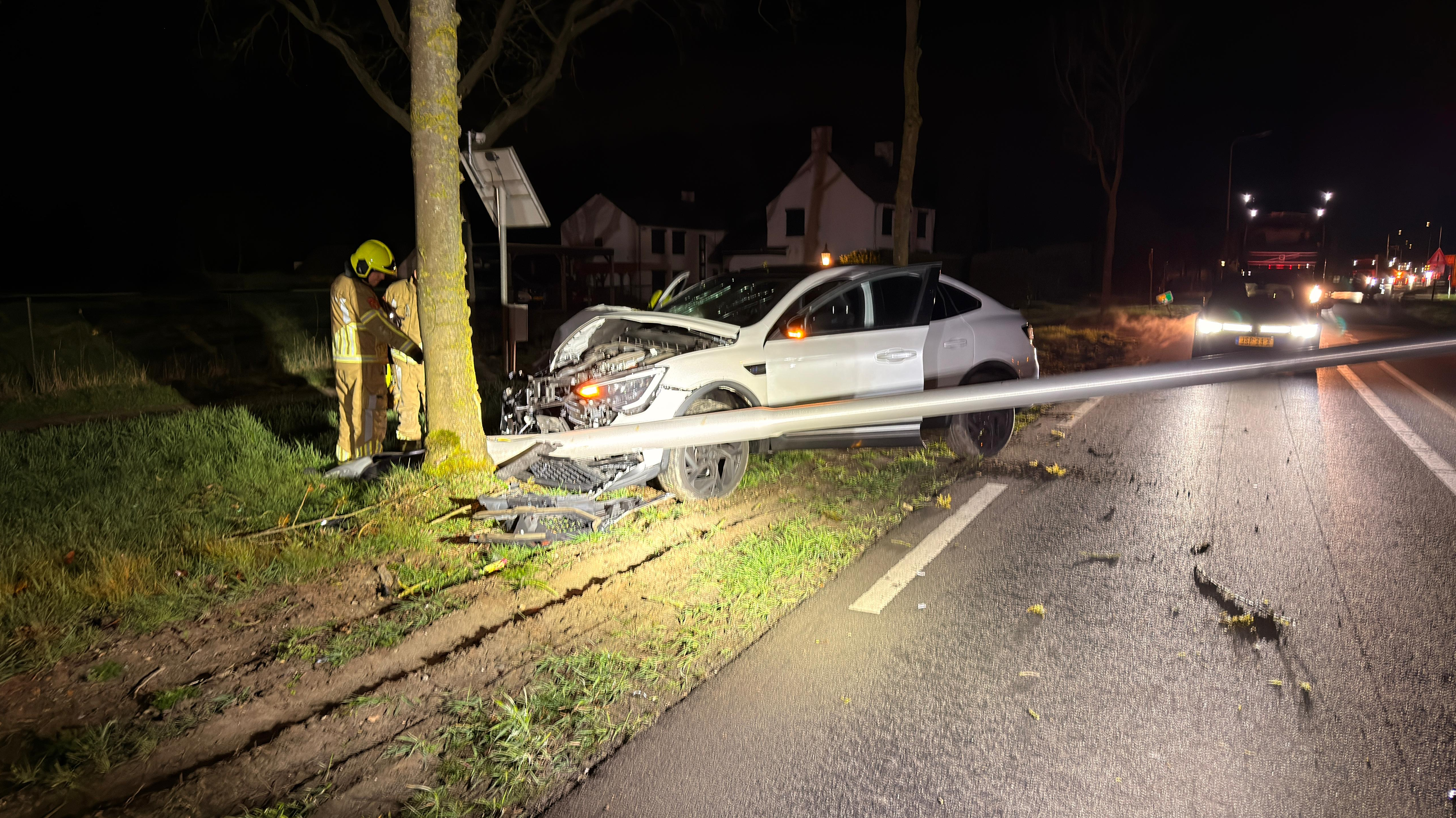 Een flinke ravage woensdagavond bij een eenzijdig ongeval op de Oud Rijksweg Zuid (N276) in Susteren. Een auto raakte daar van de weg, reed een lantaarpaal omver en kwam tegen een boom tot stilstand.