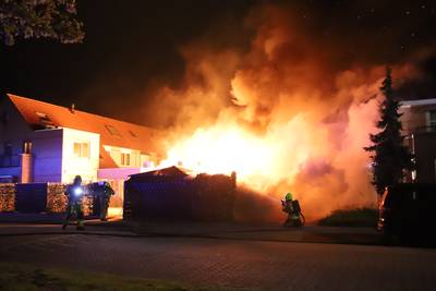 Grote vlammenzee verwoest schuurtjes tussen woningen