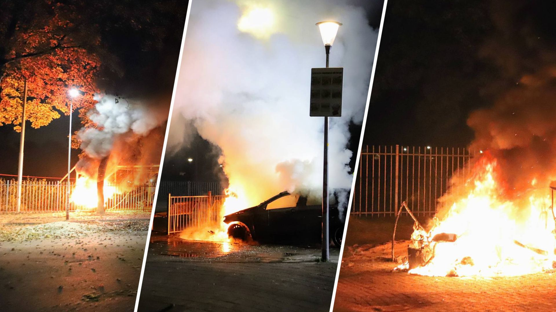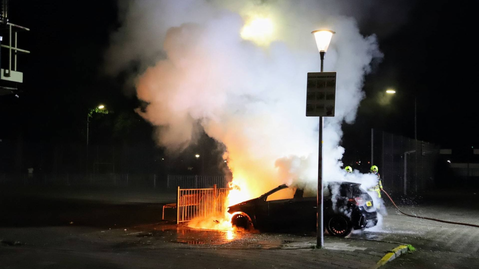 Auto gaat in vlammen op achter sporthal, politie onderzoekt brandstichting