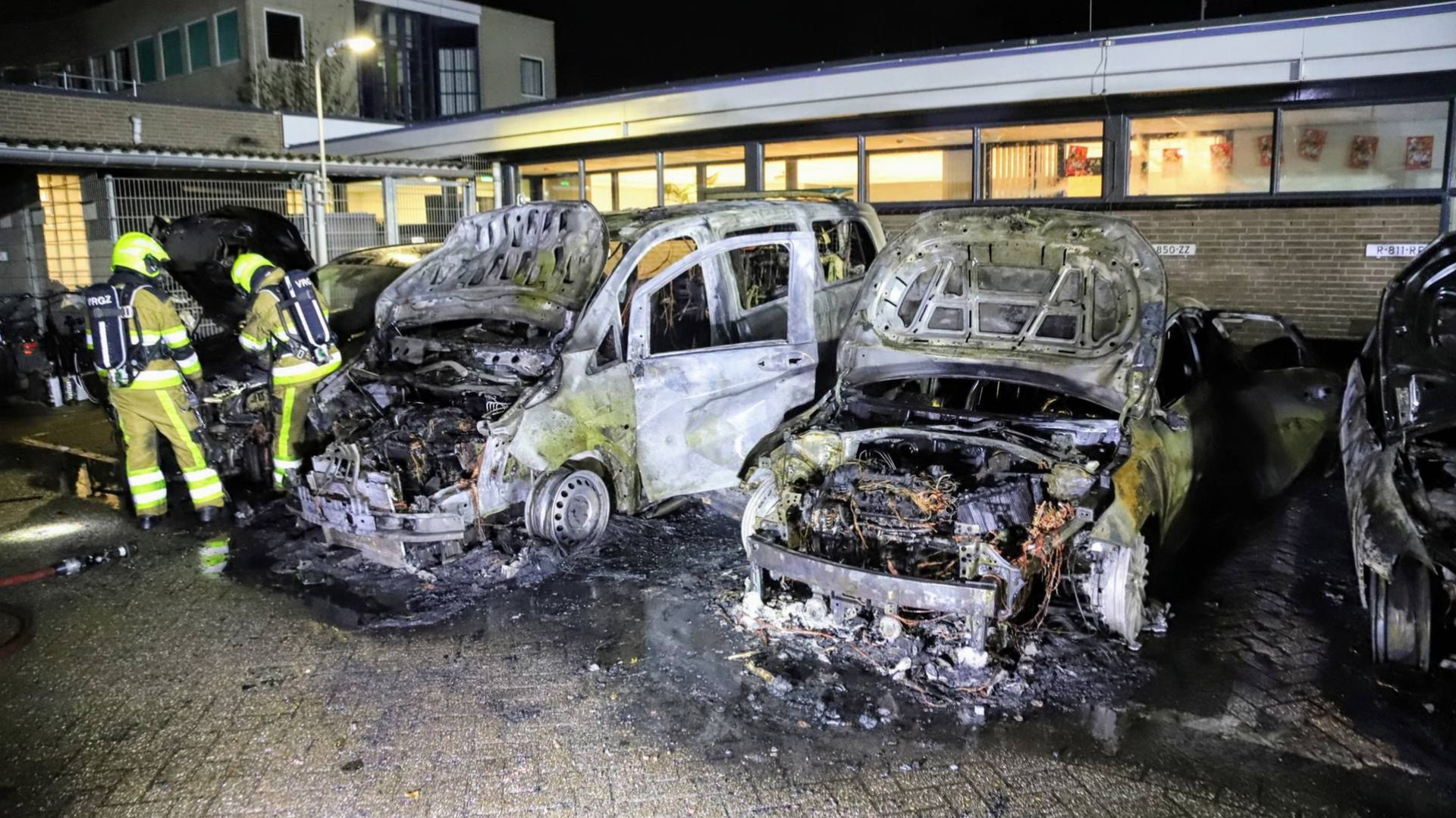 Vier politievoertuigen compleet uitgebrand op parkeerplaats van bureau in Tiel