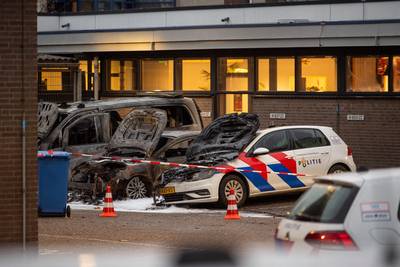 Vier politieauto’s gaan in vlammen op, politie onderzoekt oorzaak