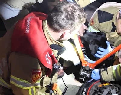 Brandweer slijpt spaak los uit ooglid van hond na ongeluk met fatbike