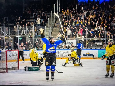 Tilburg Trappers is vrijdagavond de kwartfinale van de play-offs begonnen met een 5-3 winst op Tölzer Löwen. Lang kunnen de Tilburgse ijshockeyers niet genieten van de overwinning, want zondag staat de tweede wedstrijd op het programma in Bad Tölz, ruim 800 kilometer rijden. De supporters van Tilburg Trappers zijn trots op hun ploeg.