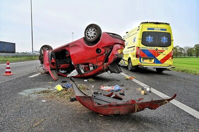 Auto slaat over de kop op A58, meer dan een uur vertraging