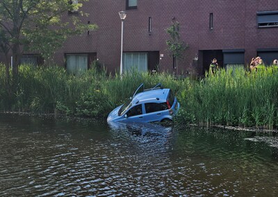 TILBURG - Een auto is dinsdagavond van de weg geschoten aan de Ravensteinerf in Tilburg, in de wijk Reeshof. De auto belandde vervolgens in de vijver.