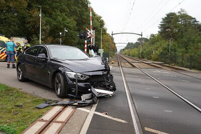 Auto komt in botsing met trein op spoorwegovergang in Tilburg