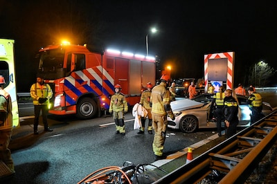 Bestuurder slingert over de weg en botst tegen pijlwagen op de A58