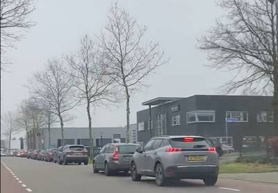 Video | Automobilist filmt enorme wachtrij voor teststraat in Uden