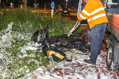 Opnieuw brandt er een scooter uit op Urk, maar deze keer op een andere rotonde