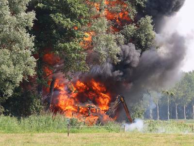 Metershoge vlammen en dikke rookwolken: trekker vliegt in brand bij werkzaamheden buiten Urk