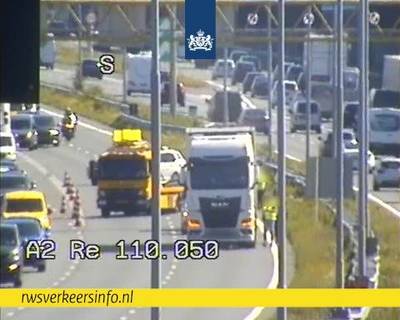 Ongeluk met auto en vrachtwagen op A2 bij kooppunt Empel zorgt tijdelijk voor grote vertraging