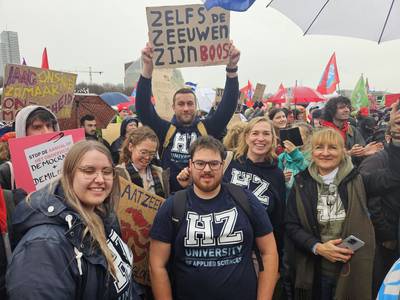 maandag 25 november 2024, 15:09 uurStudenten en medewerkers van de HZ en UCR trokken maandag naar Den Haag om te protesteren tegen de bezuinigingen in het onderwijs. Ze maken zich grote zorgen. ,,Het is de vraag of we al onze opleidingen overeind kunnen houden.”