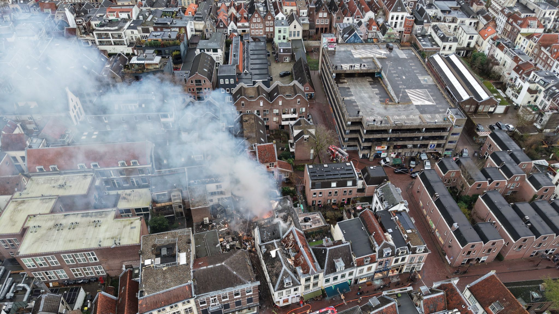 In de binnenstad van Utrecht hebben meerdere explosies plaatsgevonden en is een grote brand uitgebroken. De hulpdiensten zijn massaal aanwezig in de binnenstad en helpen omwonenden met evacueren.