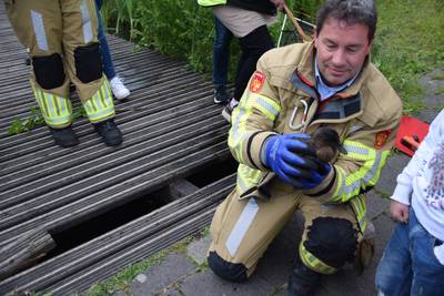 Brandweer in Veenendaal herenigt eendjes met hun moeder