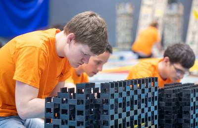 Het Dutch Domino Team bouwt aan een 900.000 stenen-groot dominokunstwerk in sporthal De Vallei in Veenendaal. Vrijdagavond, tijdens de World Domino Collective, valt alles in twintig minuten om. ,,Ja, daar moet je tegen kunnen.”