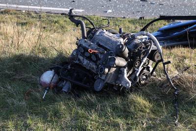 Zwaargewonde bij botsing met drie voertuigen in Veghel, motorblok slingert door harde klap uit auto