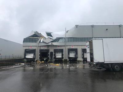 Dak voormalig distributiecentrum Jumbo in Veghel stort in