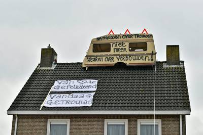 Van je vrienden moet je het hebben. Dat zullen Mark en Nathalie ongetwijfeld hebben gedacht toen het kersverse bruidspaar thuiskwam na hun bruiloft zaterdag. Op het dak van hun huis in Veldhoven stond een caravan met daarop de tekst 'na mauwen over trouwen, niet meer zeuren over verbouwen'.