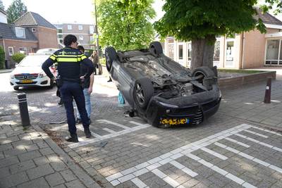 Auto belandt op de kop, middenin woonwijk in Velp